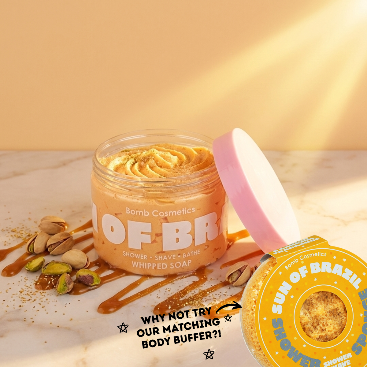 Sun of Brazil is a luxuriously whipped soap that wraps your skin in a rich, creamy lather and an addictive, beach-kissed aroma! Hand-piped to perfection and made with a nourishing butter base, this soap cleanses gently while leaving your skin feeling soft, smooth, and pampered!